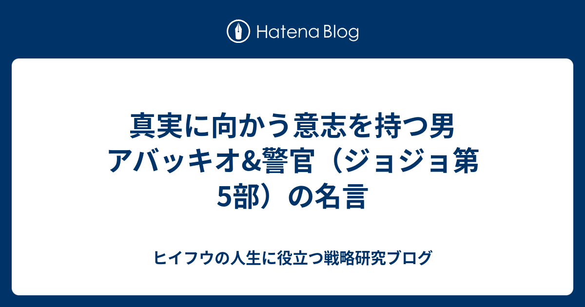 真実に向かう意志を持つ男 アバッキオ 警官 ジョジョ第5部 の名言 ヒイフウの人生に役立つ戦略研究ブログ